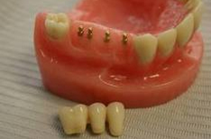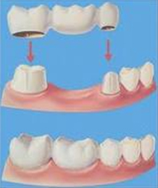 A fixed bridge can replace one or more missing teeth. It consists of one or more artificial solid teeth suspended to crowns that are placed on two or more supporting teeth. Fixed bridge helps to reestablish normal function and precise position of your bite. It is made of various metals, porcelain, or a combination of the two.
