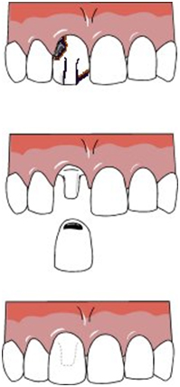 1) The tooth is trimmed to perfect shape to accommodate the Crown/Bridge.