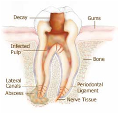Root canal therapy is a dental treatment for removing an infection from a decayed or fractured or dead tooth. It is carried out in the pulp of the tooth, which is located in the core of the crown & root of the tooth. It also protects the tooth from future infections.