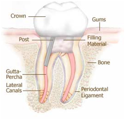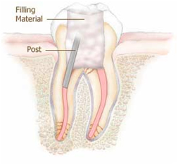 In some cases to give the crown more support, a post is placed into the root next to the gutta-percha.